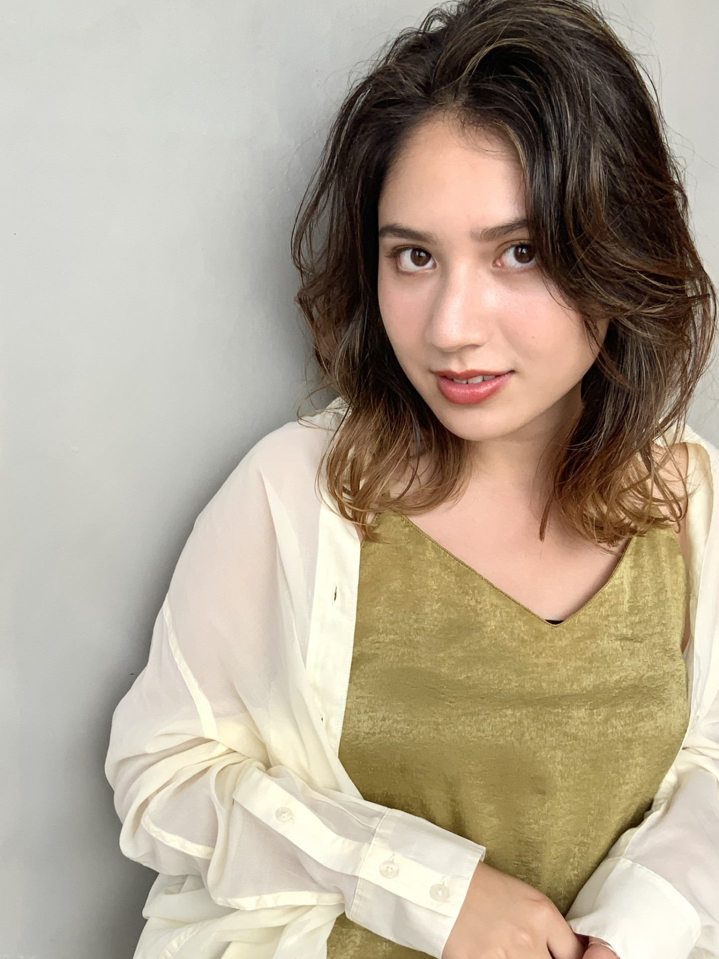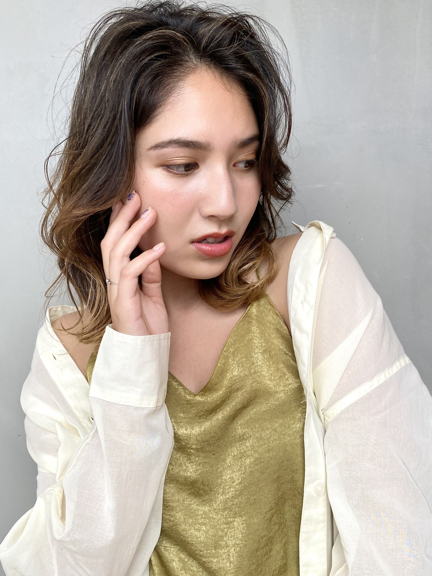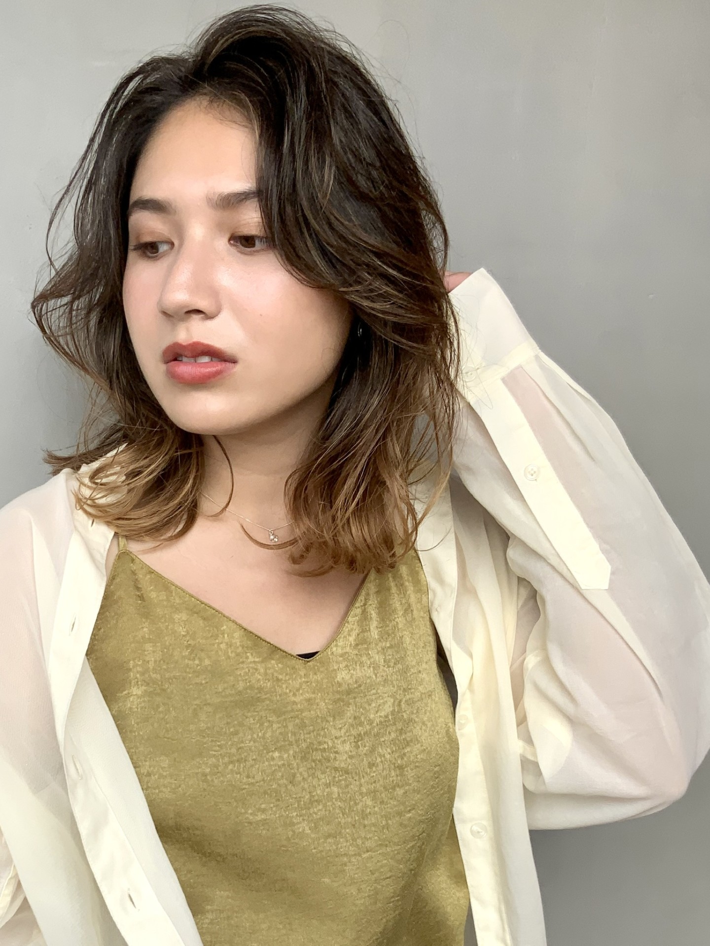女性らしい動きのあるシルエットに、細めでたっぷりと入れたハイライトでヘルシーに。