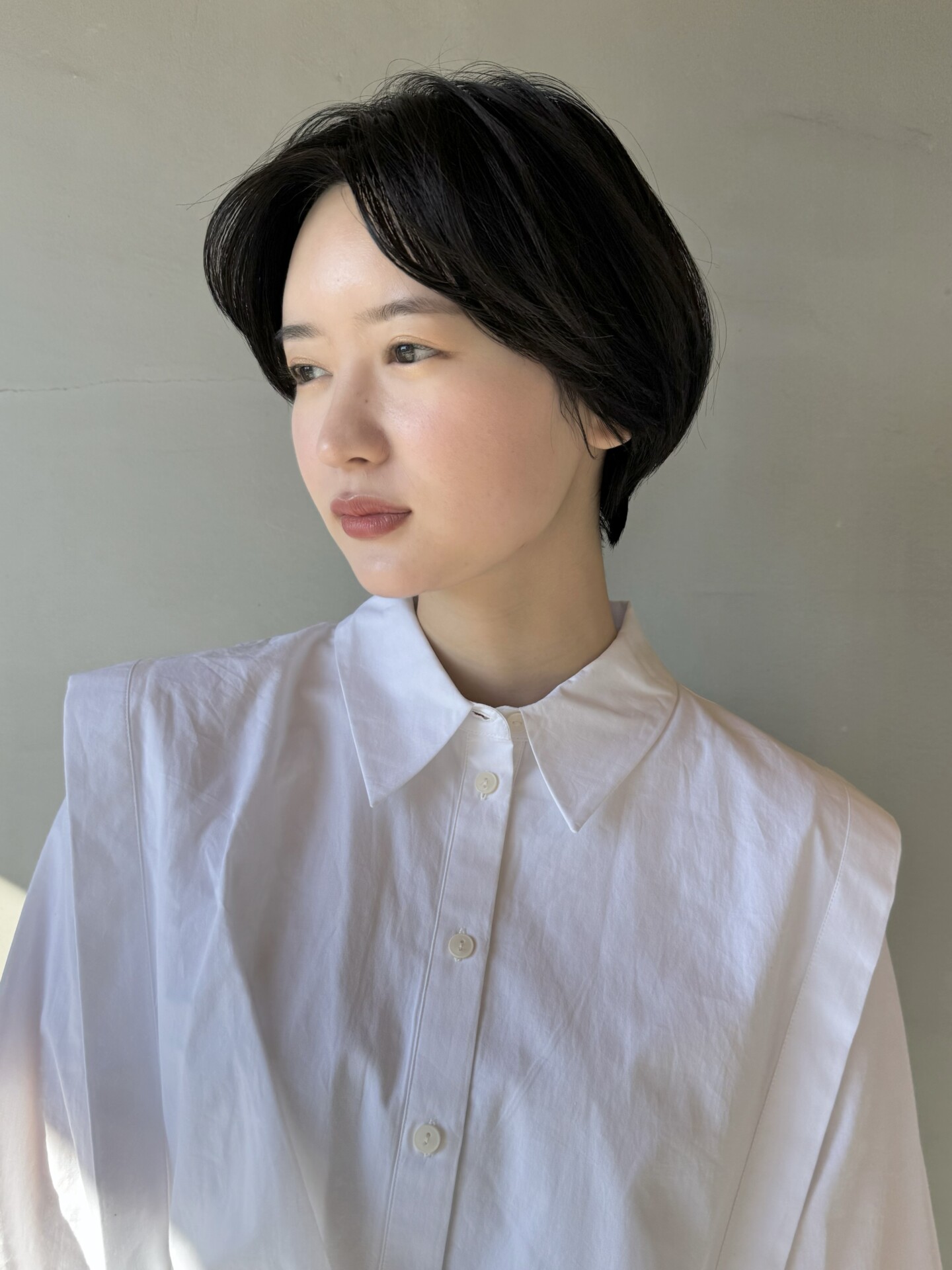 おしゃれ女子に人気なハンサムショートスタイル。フワッとしたひし形ショートスタイルで美シルエット間違いなし。前髪からサイドへ繋がる毛流れで洗練されたショートスタイルに。