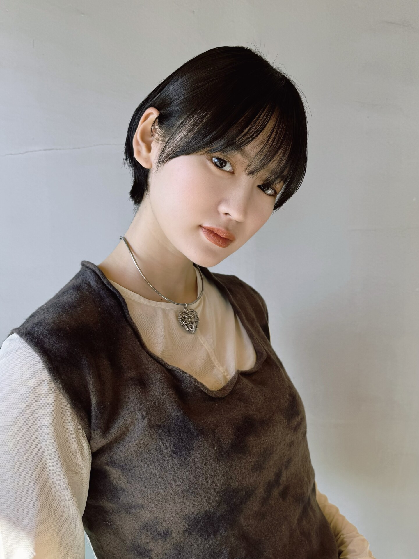 王道マッシュショートスタイル。シースルーバングに耳掛けとおしゃれ可愛いショートスタイルです。可愛い感じ、かっこいい感じなど何でもハマる万能スタイルです。