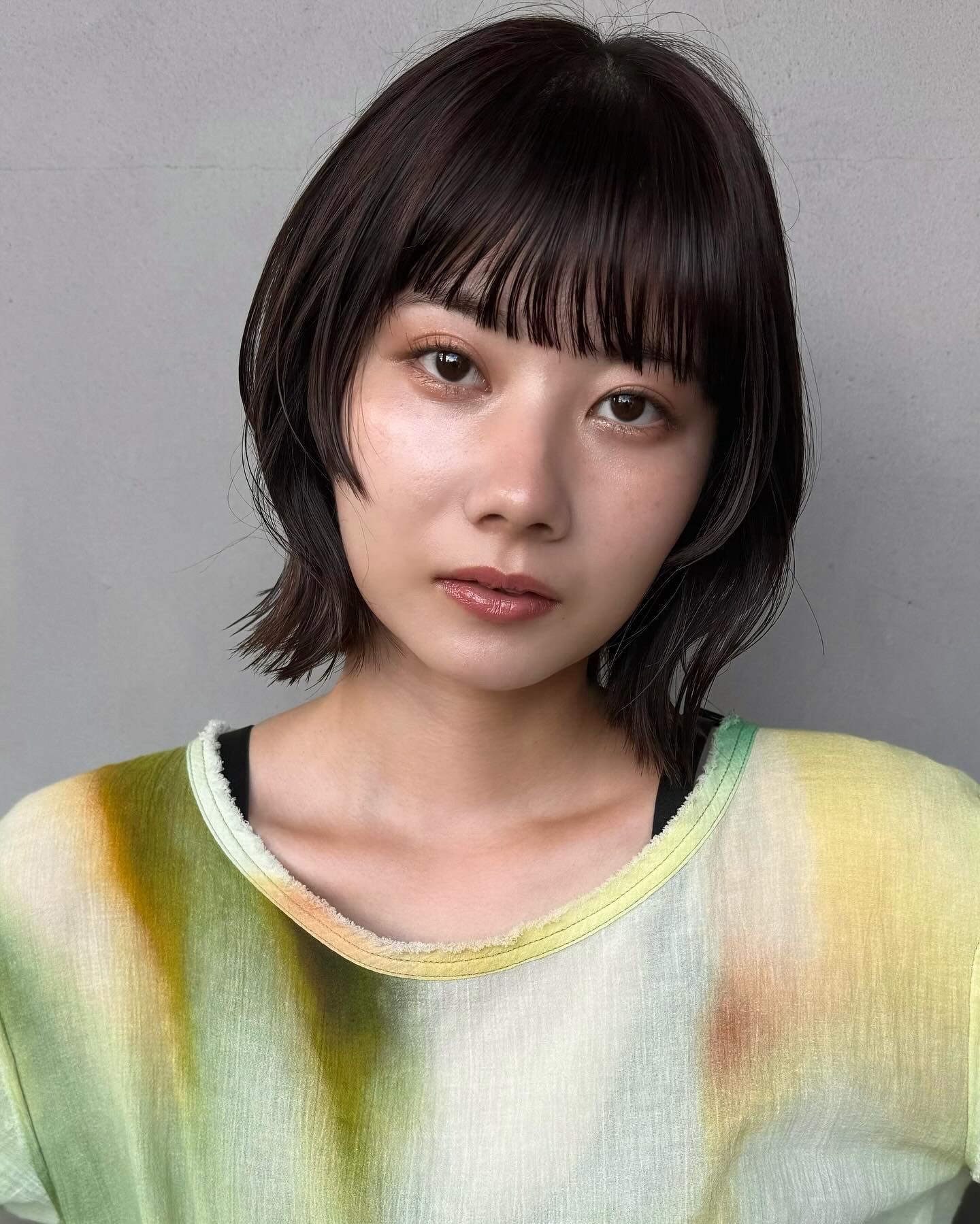 顔周りのコスメポイントが可愛い外ハネミディアムスタイル。アゴ下の絶妙な長さがスタイリングの幅を広げます。外ハネ、内巻き、ランダム巻きなどどんなスタイリングもOK!