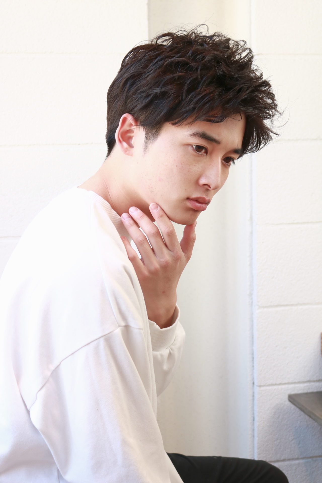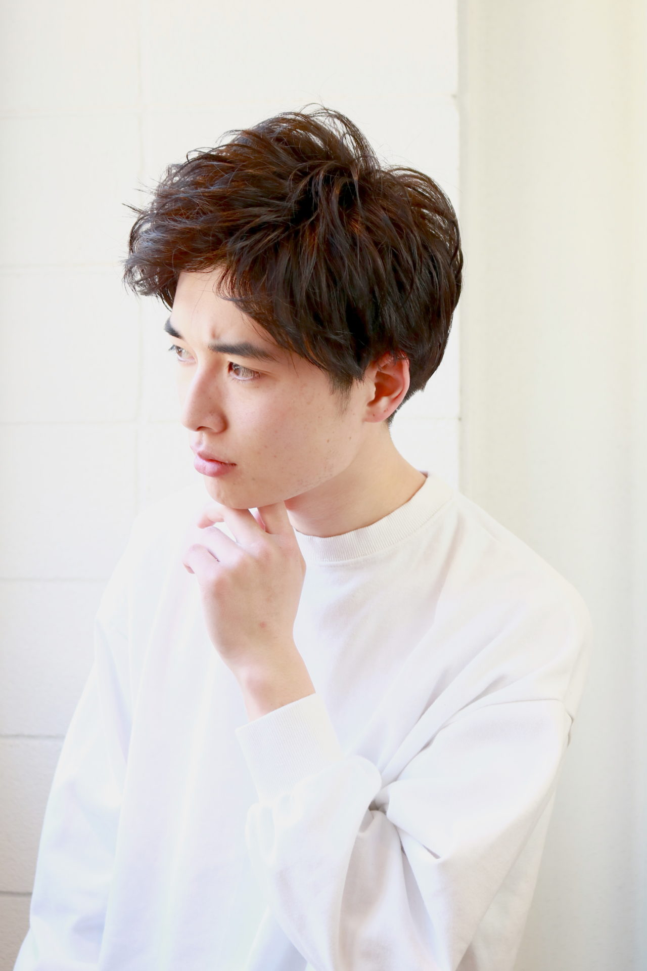 2ブロックでパーマヘアでバングを立ち上げることで男らしさのあるスタイルになります!!