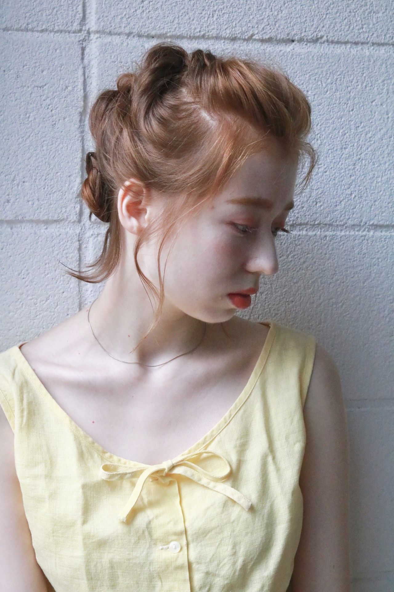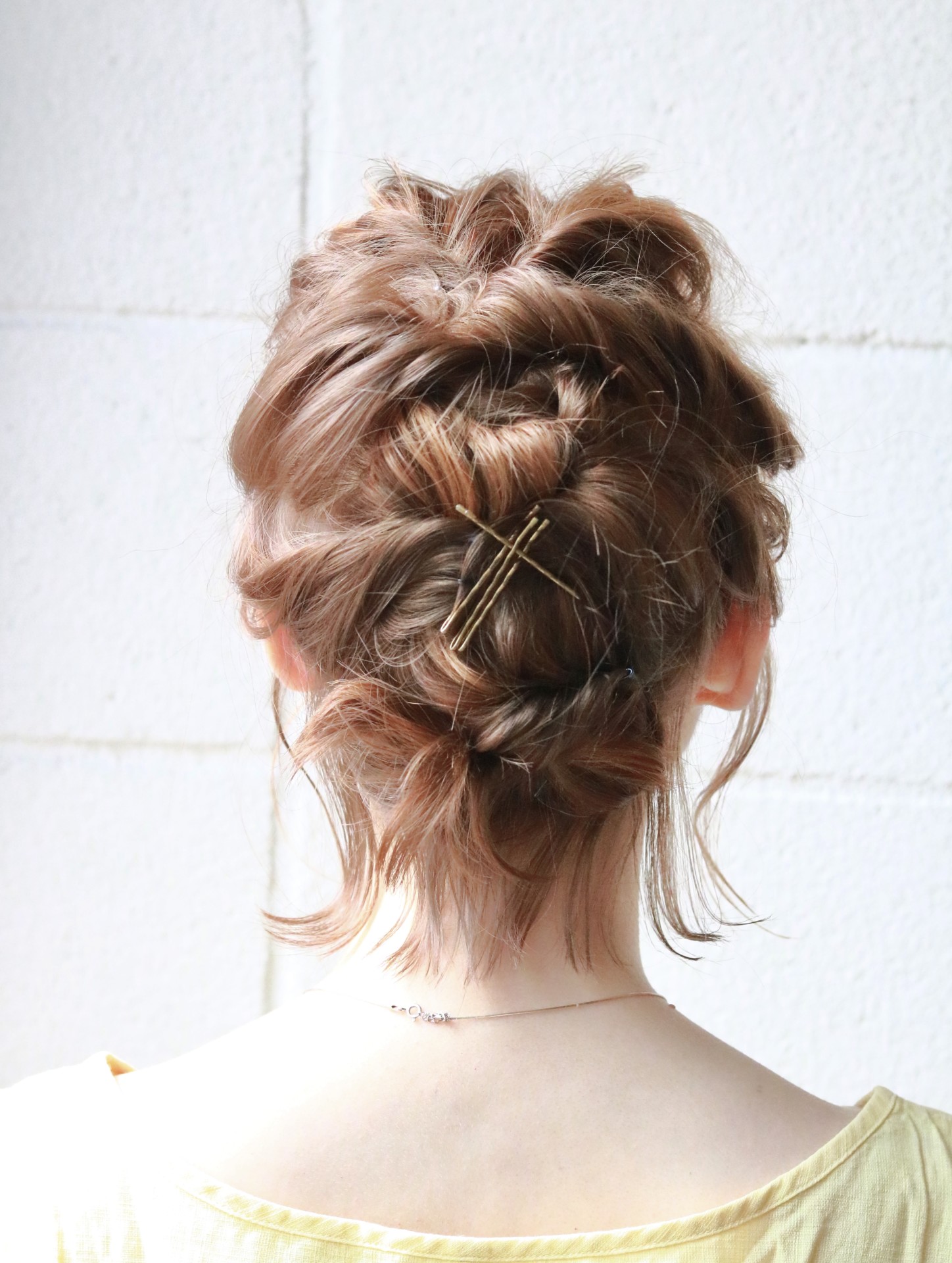 短めのボブだからこそ、丁度良い後れ毛のあるヘアアレンジ。