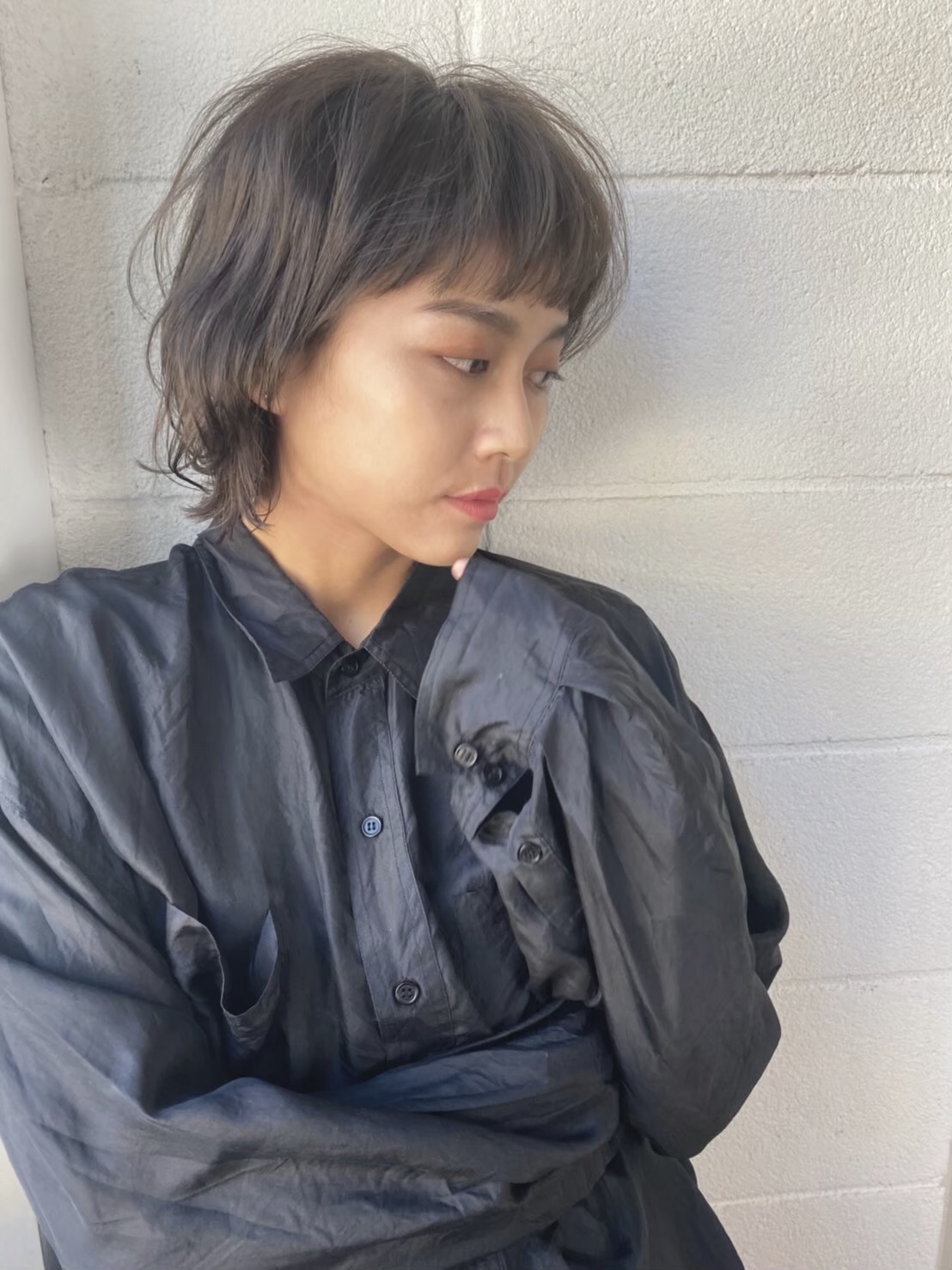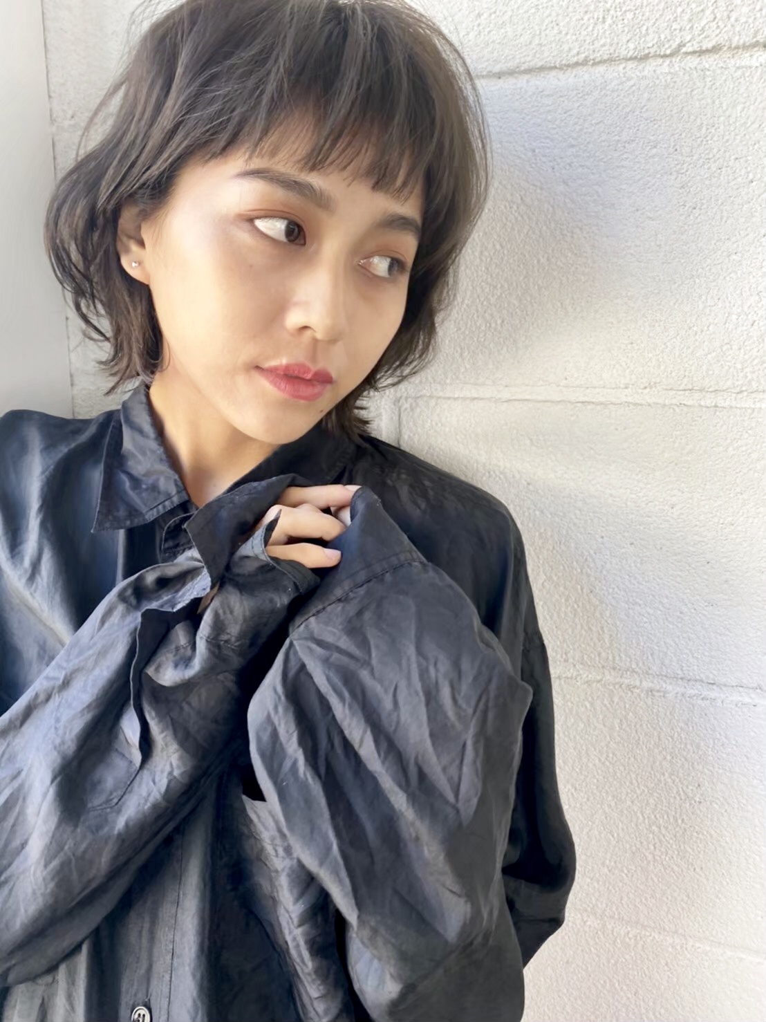 透明感のあるグレージュカラー!大きめの波ウエーブでふんわりしたミディアムスタイル
