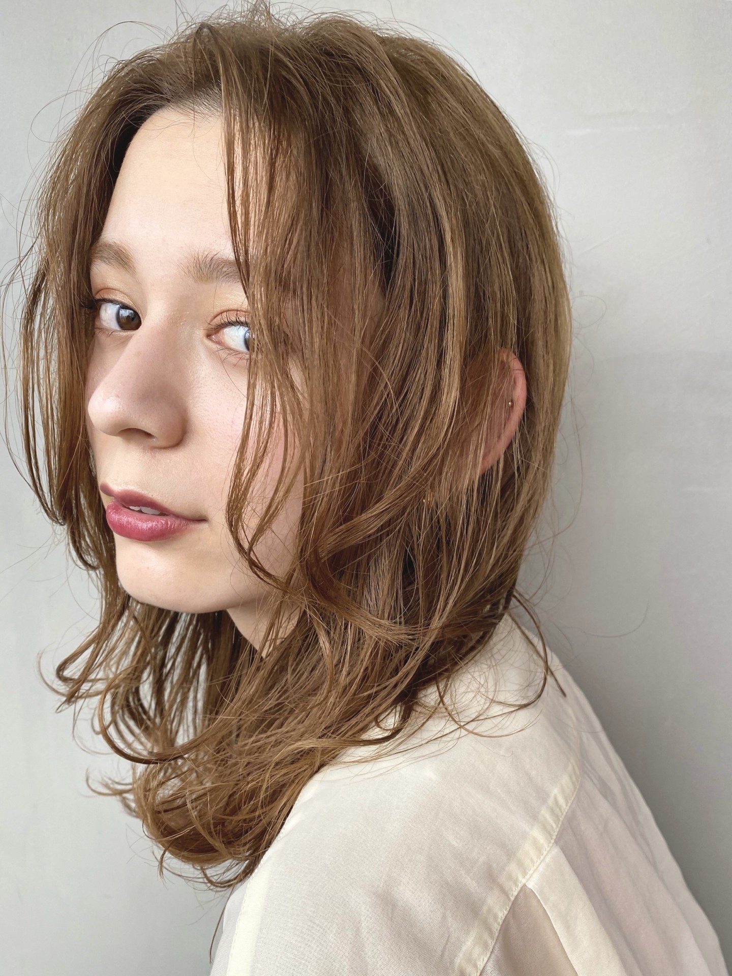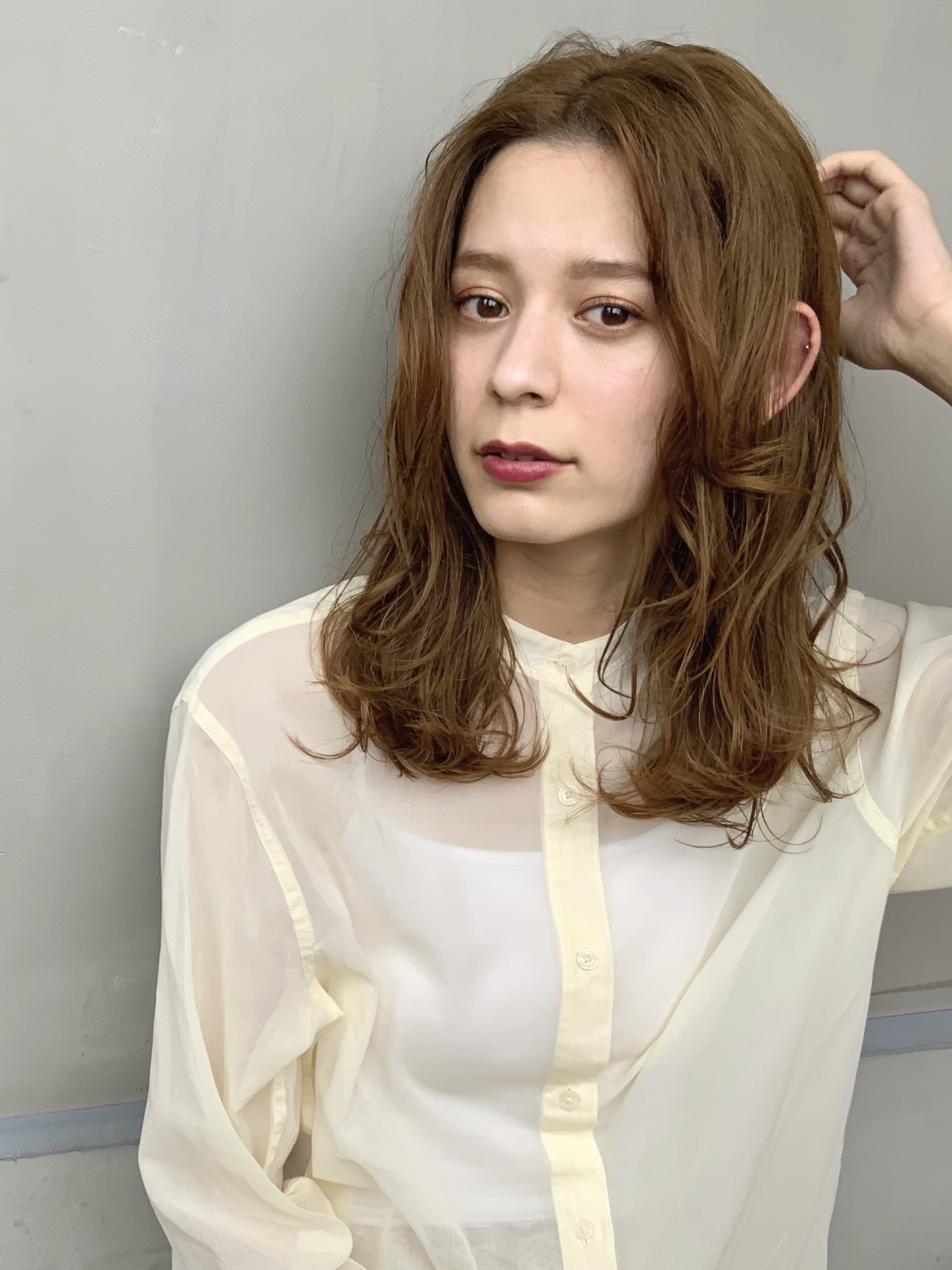 レイヤーに沿って毛先ワンカールに巻いたウエットワンカール!