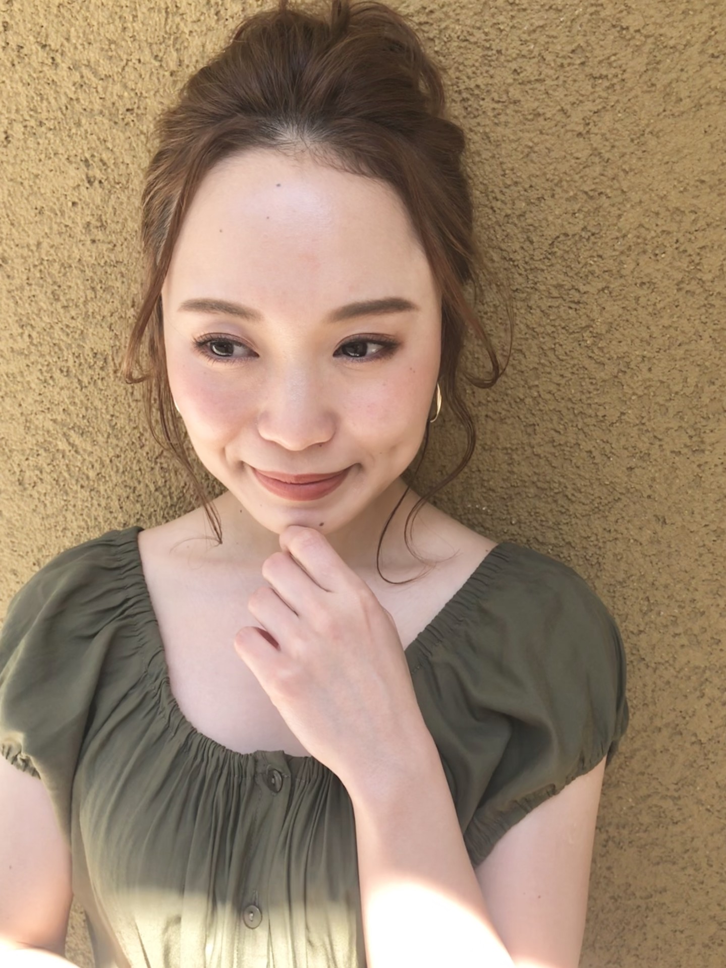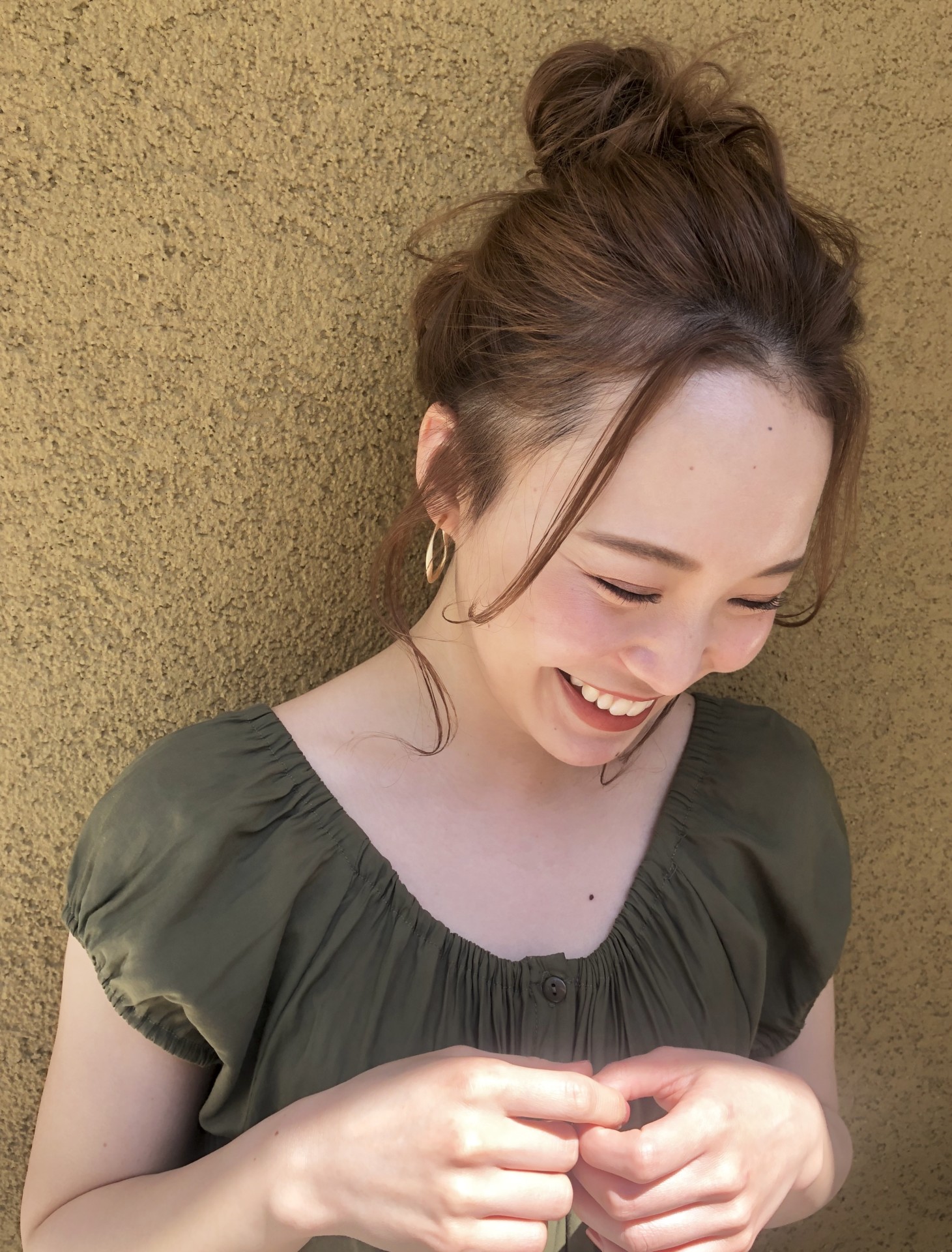 それ以外の髪を高めの位置でザックリとラフなお団子にします。