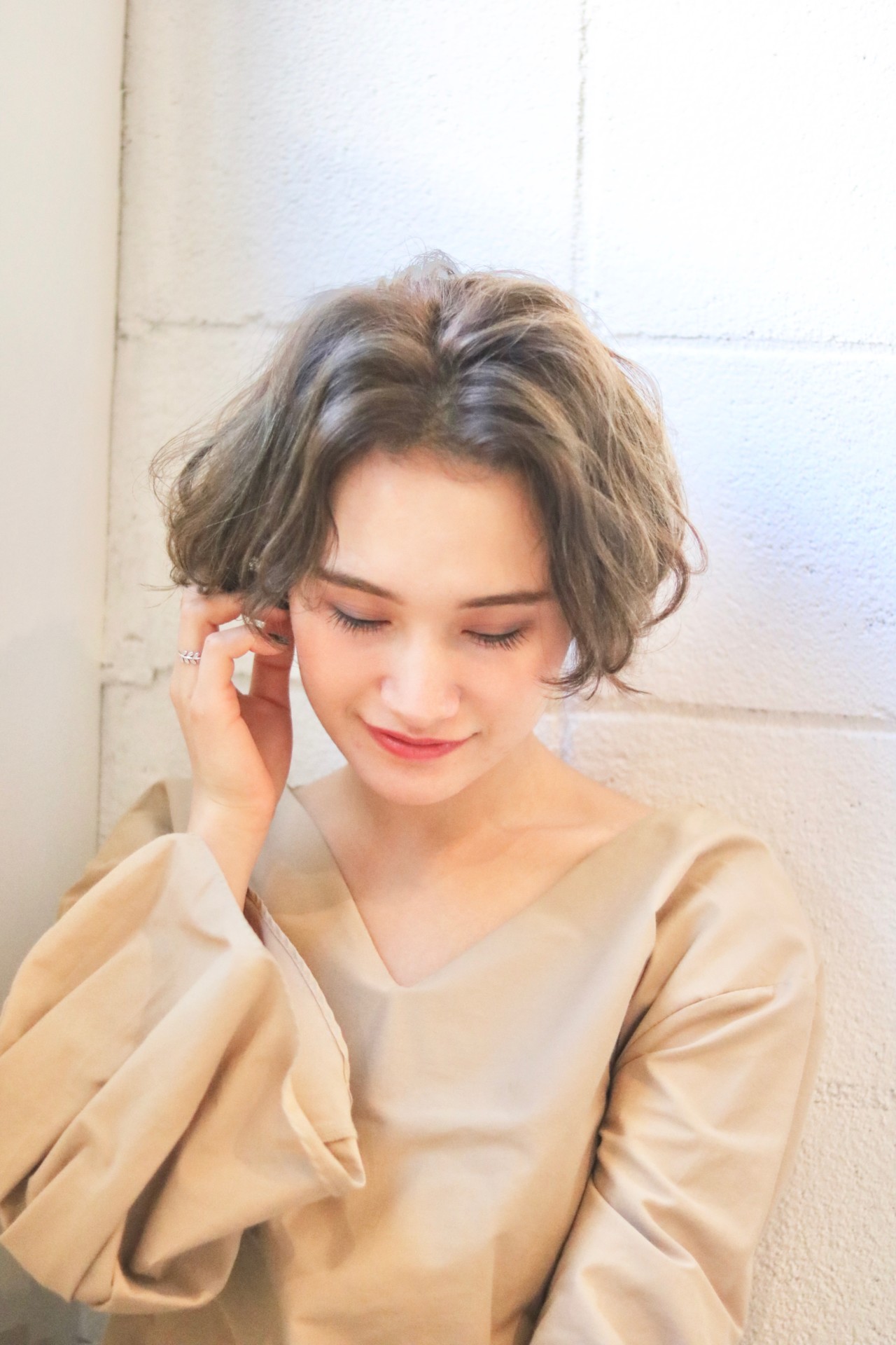 ラフなくせ毛風ウェーブ。ボブで重く見えがちなスタイルも動きを出せば軽やかなショートボブに変身。ハイ透明感の外国人風カラーでオシャレ度もupします。