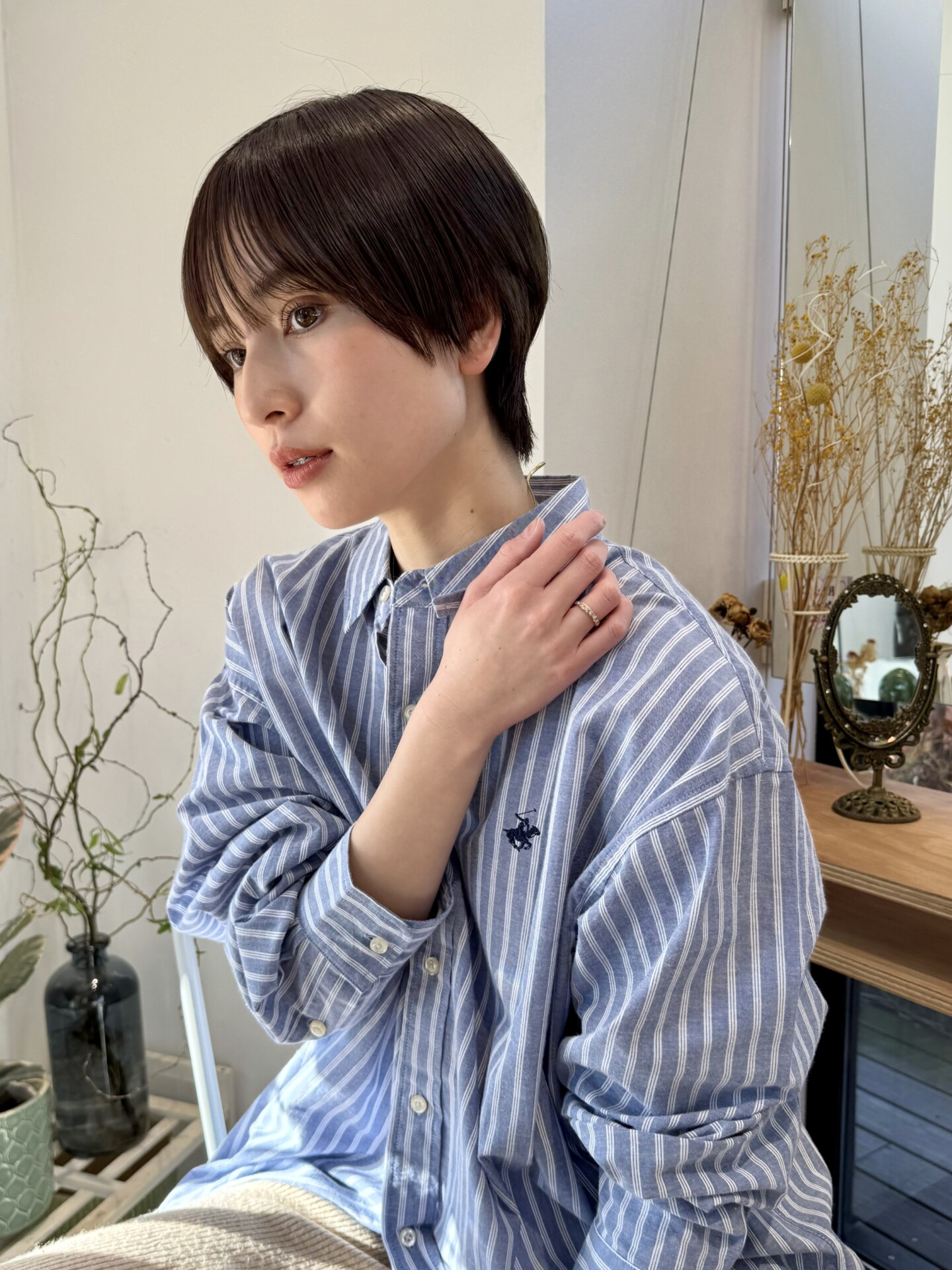 乾かすだけで美しいフォルムに仕上がるこだわりのショートスタイル。骨格にフィットするカットで小顔・小頭を叶えます。柔らかい丸みとすっきりしたバックフォルムでメリハリをつけた2025イチオシのマッシュショート。是非お試しください。