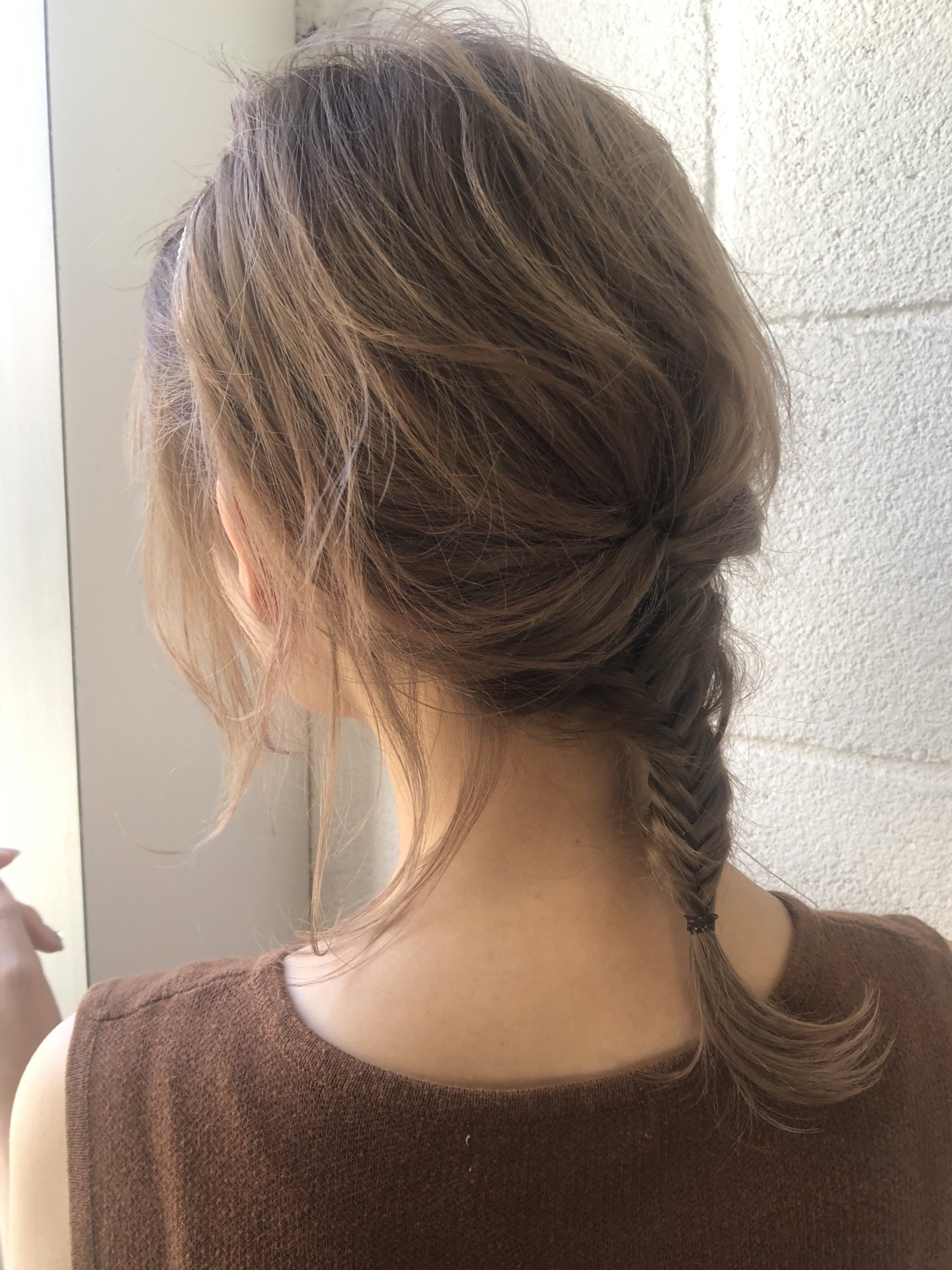 たっぷり後れ毛のフィッシュボーンアレンジ
