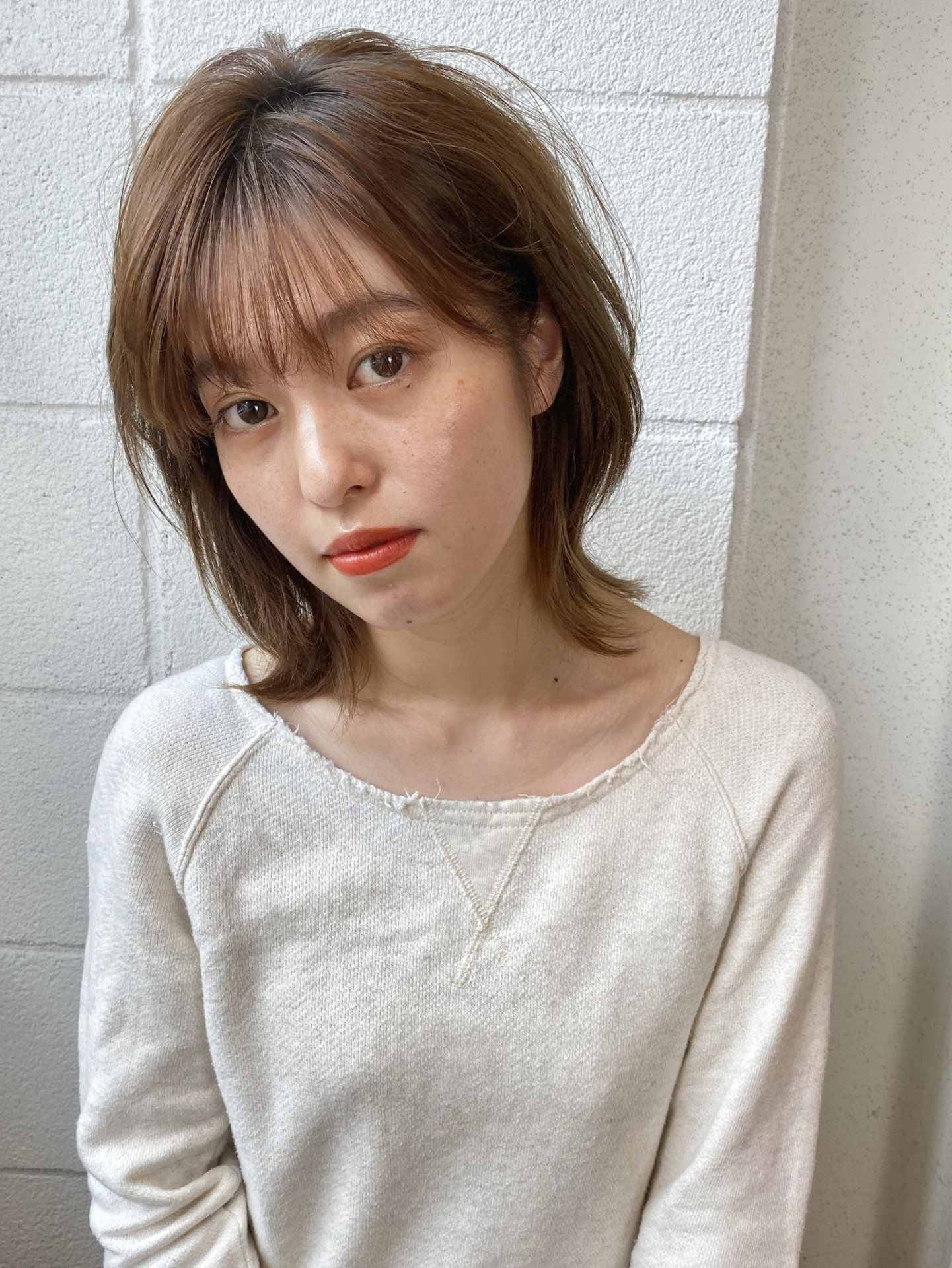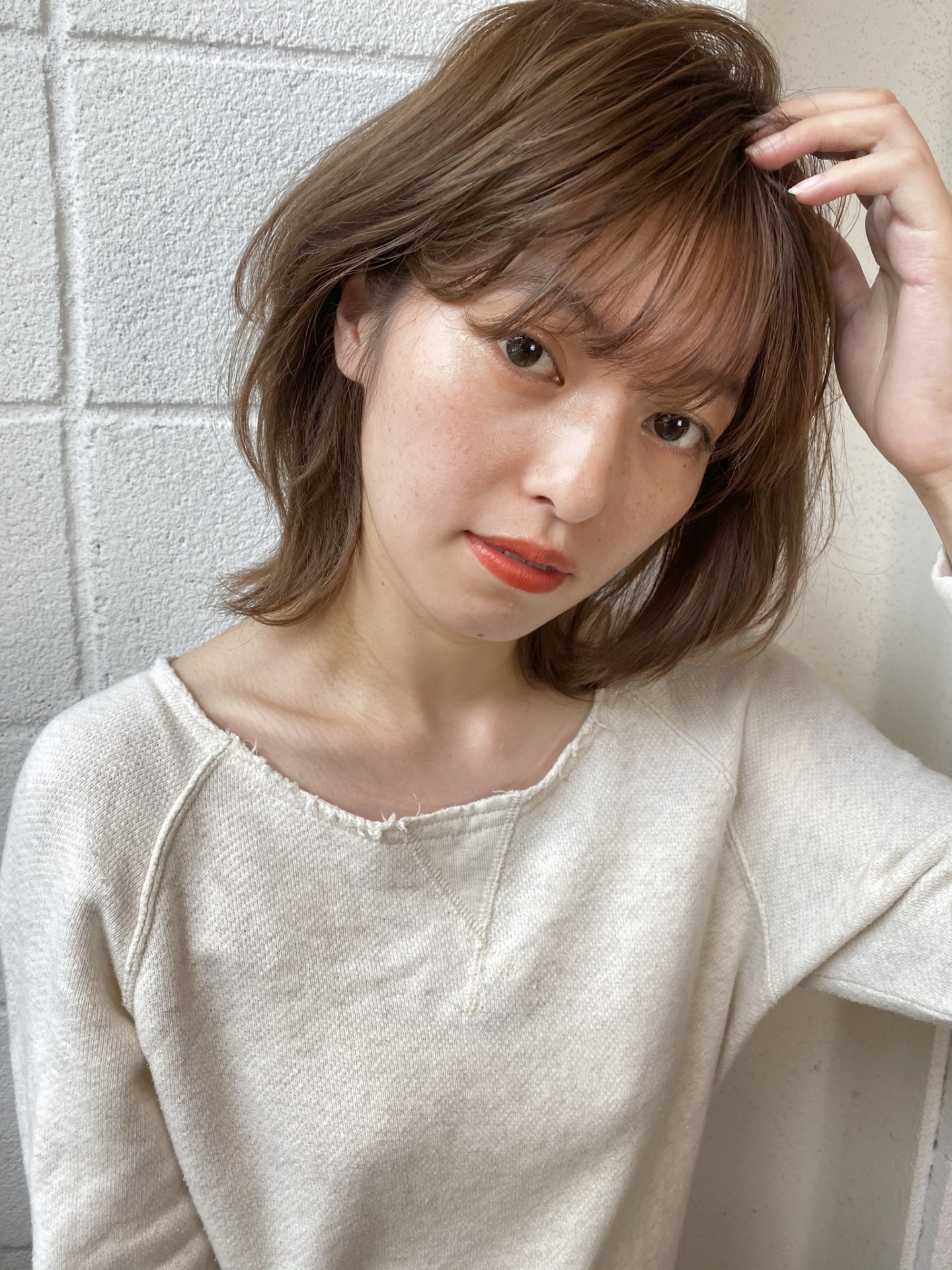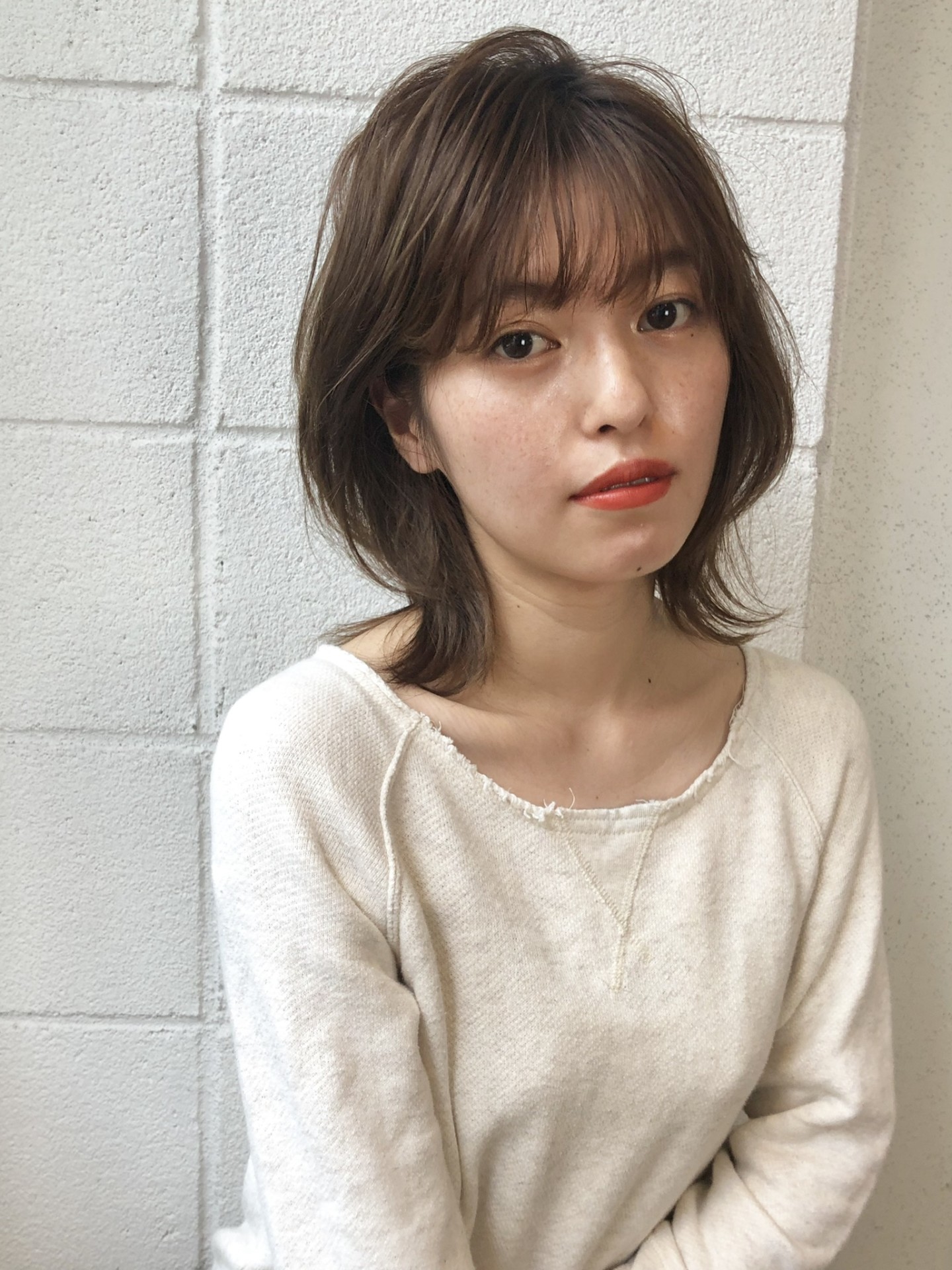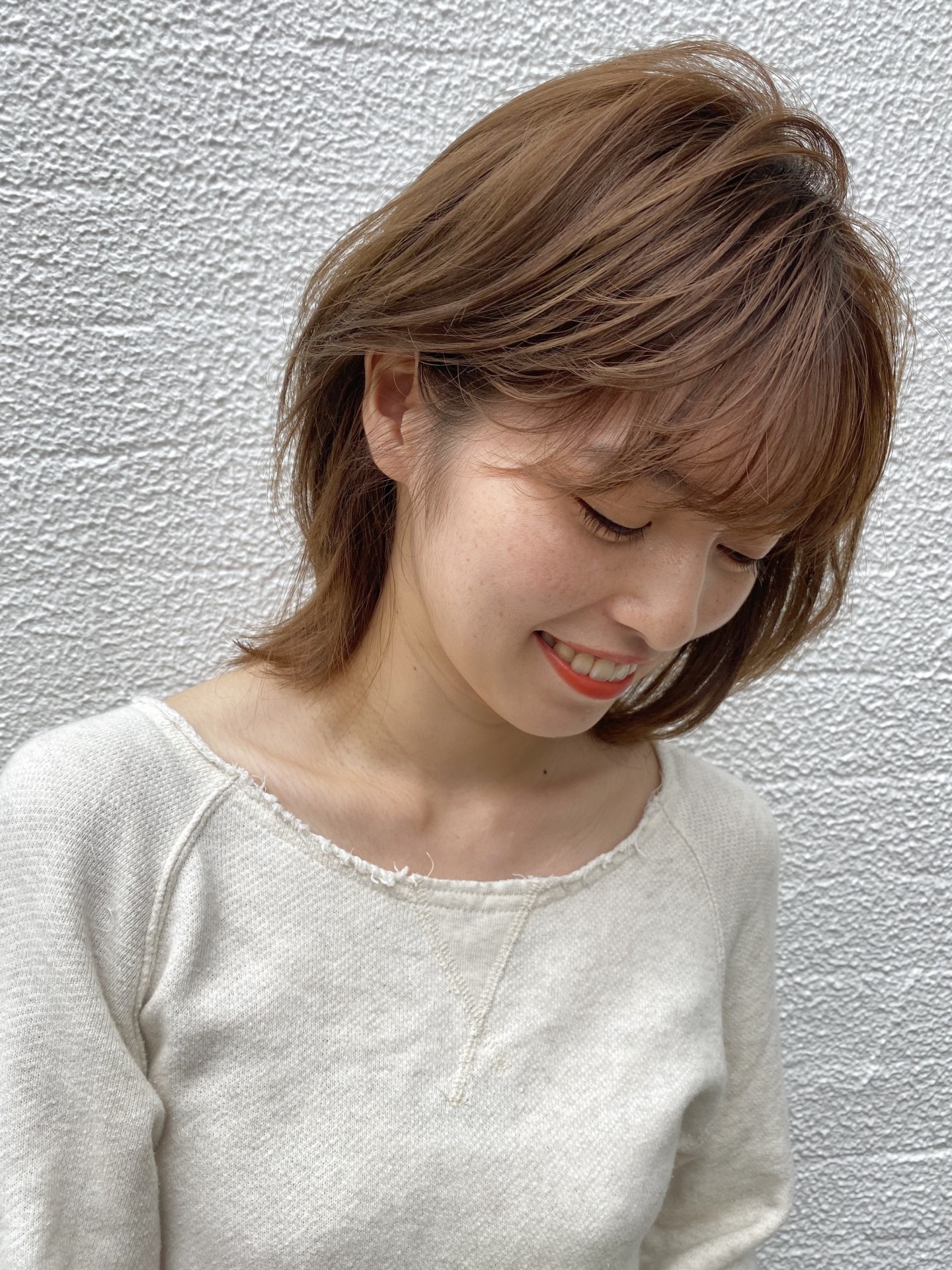 鎖骨少し上の肩について自然にはねる長さで、くびれるようにしっかりレイヤーを。