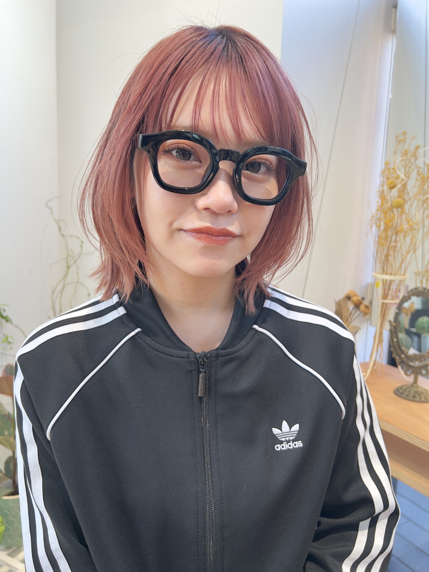 簡単にスタイリングできるレイヤーボブ。レイヤーをいれることで普通のボブも軽い印象になり動きもあってオシャレ感UPします^^カラーはブリーチしてピンクを注入!!!ボブこそハイトーンが可愛いです!1回ブリーチでこのピンクカラーは叶います*