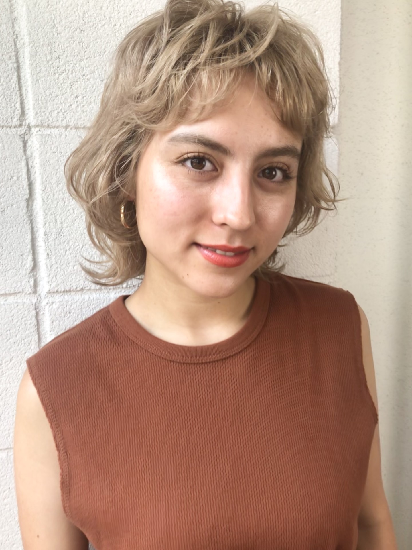 前髪は巻いて眉上で動きが出るようにして個性をプラス。