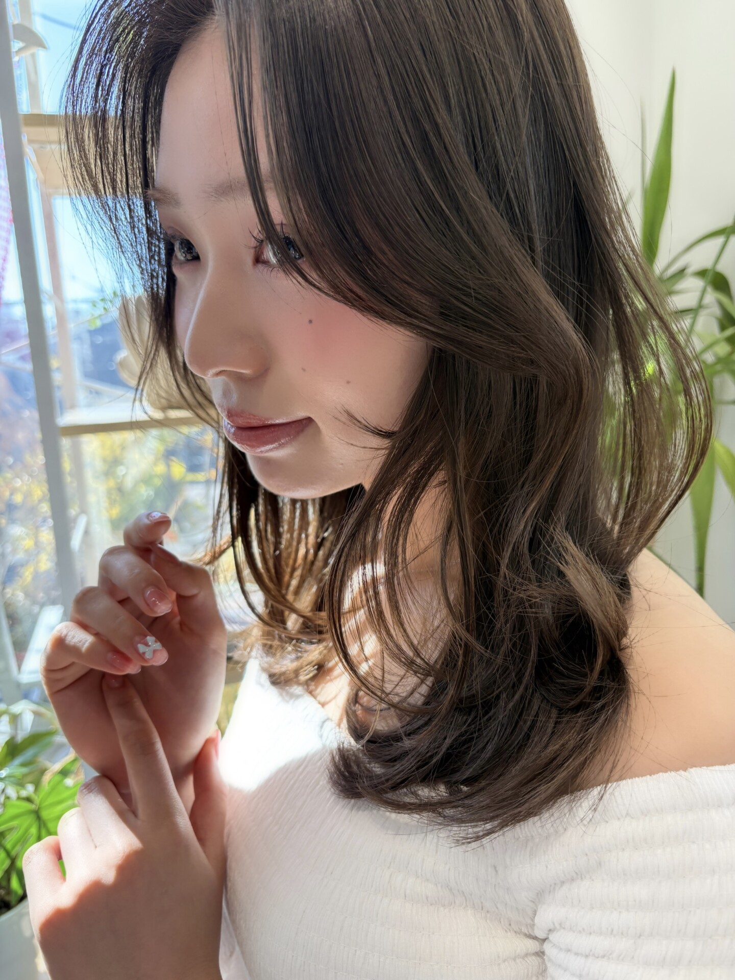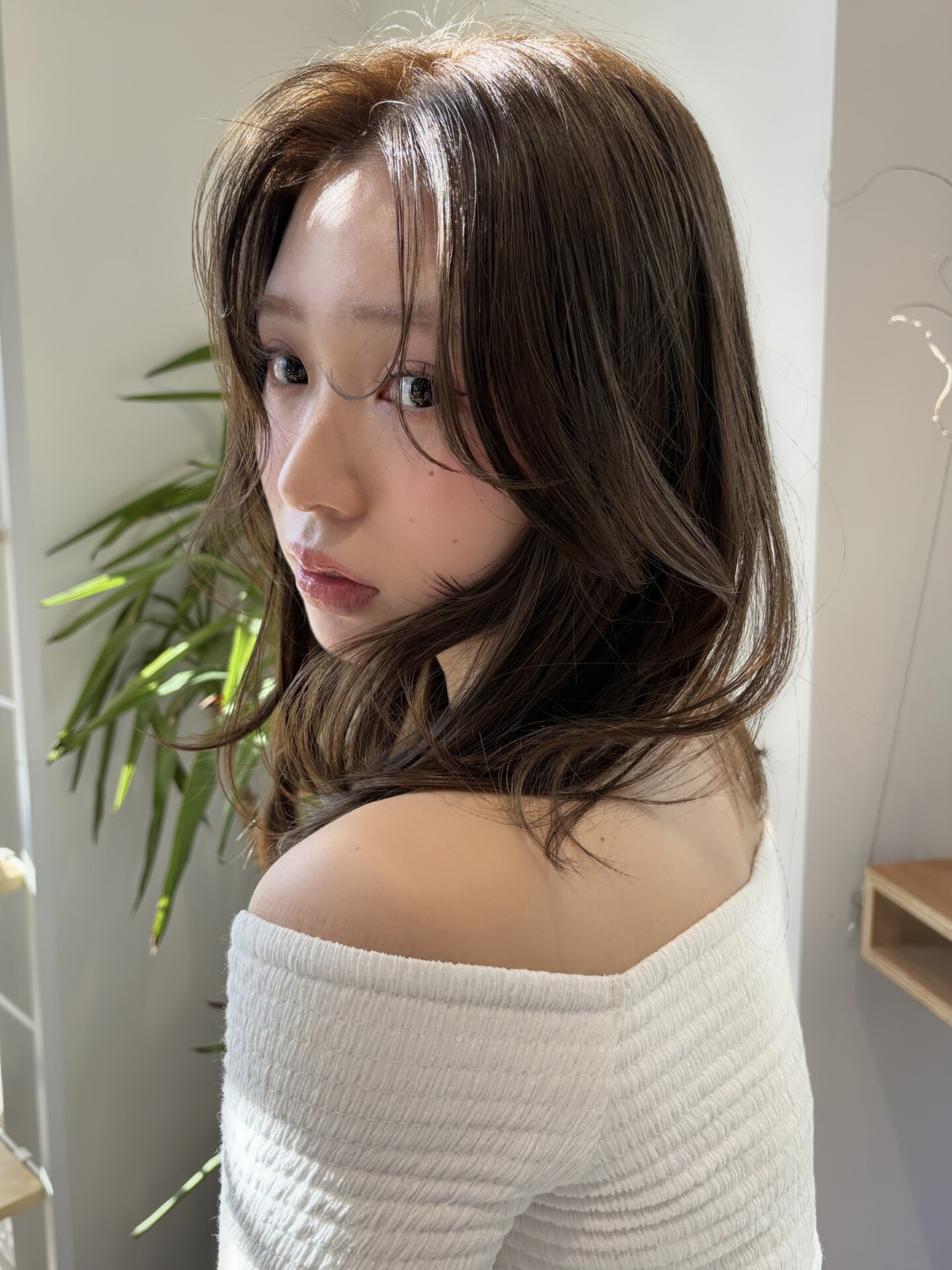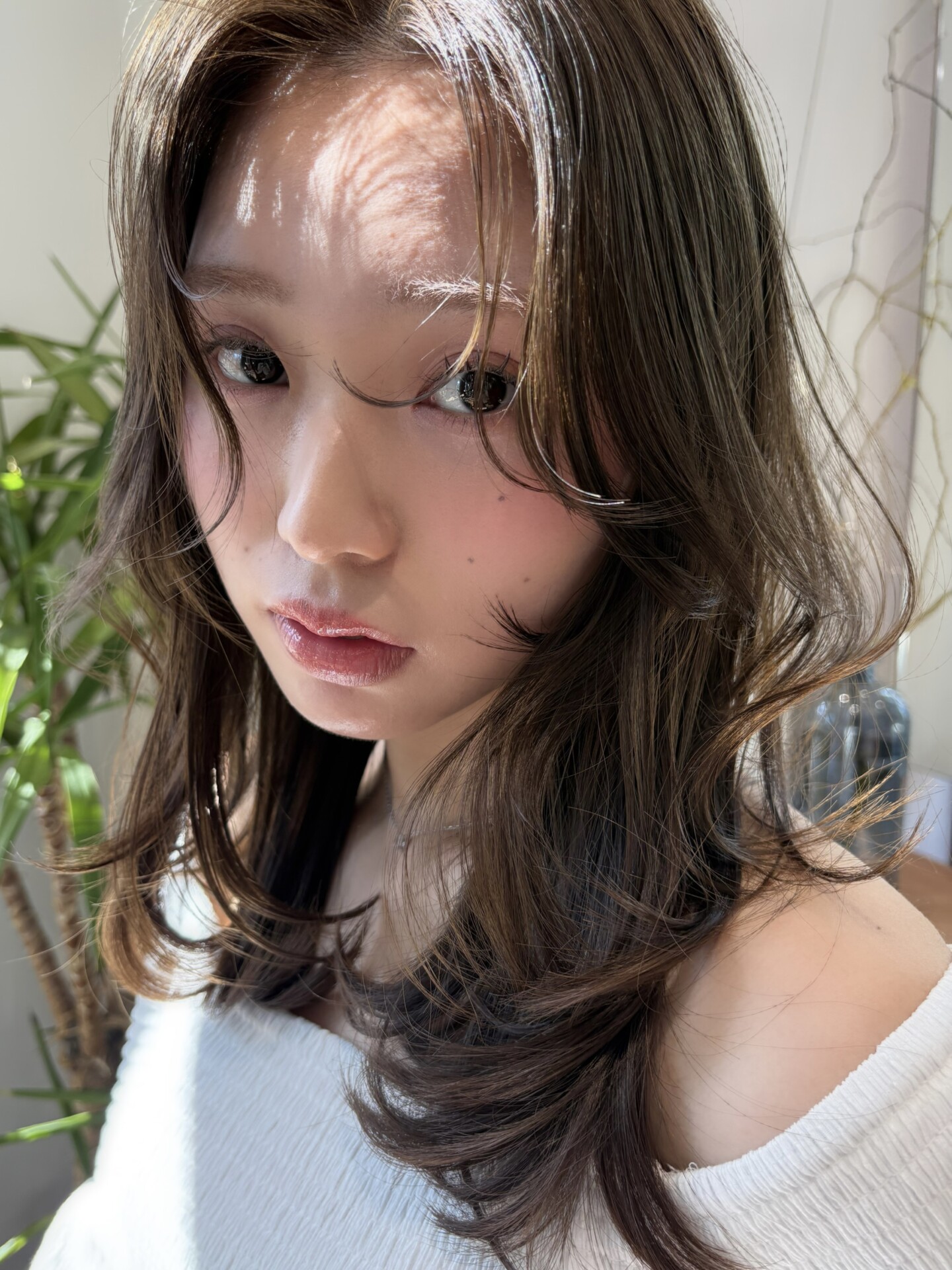 ランダムにつけたワンカールでばっちり可愛く仕上がる2025一推しのレイヤーロングスタイル*無造作に動きがつきますが量感と質感を丁寧に調整して毛先までのツヤっぽさも大切に。スソに厚みを残すことで巻かない時のまとまりもいい扱いやすいヘアスタイルです。お顔周りには特にこだわります!お顔型補正ができたり、結んだ時のおくれ毛としても使える優秀デザイン!小顔効果も◎です!オシャレ感たっぷり時に色っぽいレイヤースタイル!是非お試しください!*