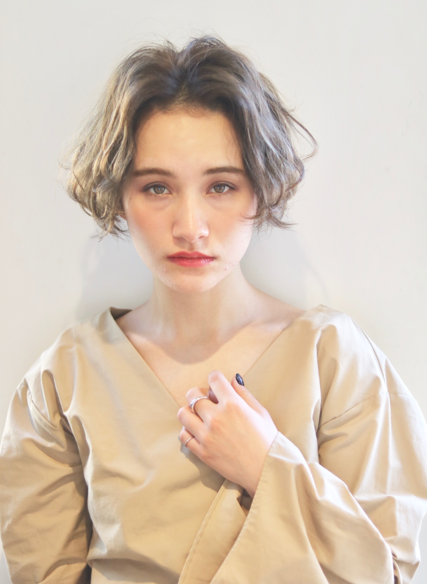 ラフなくせ毛風ウェーブ。ボブで重く見えがちなスタイルも動きを出せば軽やかなショートボブに変身。ハイ透明感の外国人風カラーでオシャレ度もupします。
