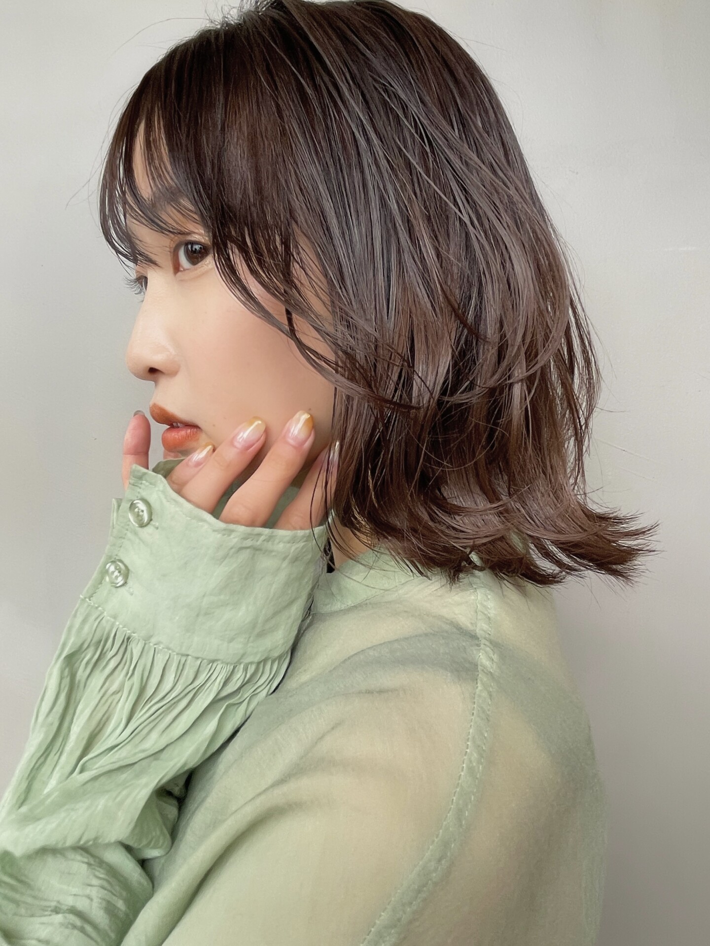 くびれてハネる春らしい軽やかなレイヤーミディアムスタイルです。