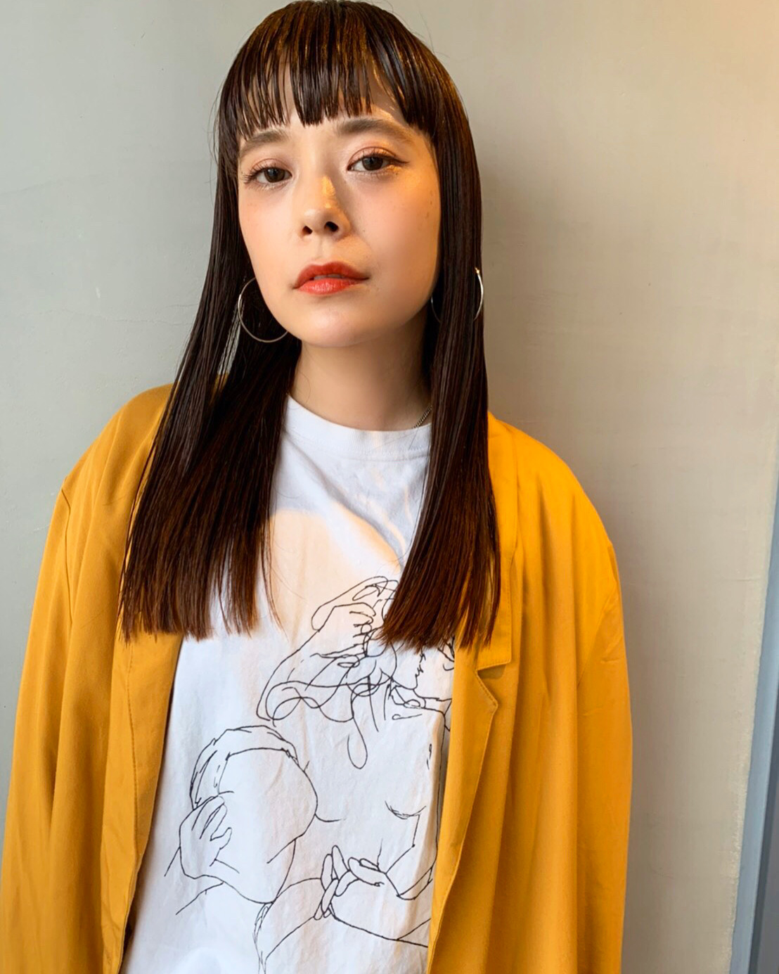 ぱつんとそろった毛先で周りと差のつくおしゃれなロングスタイルです。